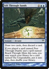 If you played a spell named Peer Through Depths and a spell named Reach Through Mists this turn, you may search your library for a card named The Unspeakable, put it into play, then shuffle your library.