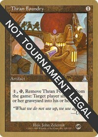 1, T, Remove Thran Foundry from the game: Target player shuffles his or her graveyard into his or her library.