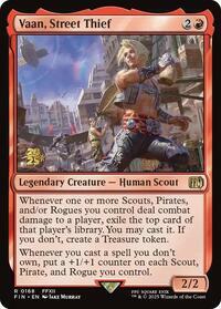 Whenever one or more Scouts, Pirates, and/or Rogues you control deal combat damage to a player, exile the top card of that player's library. You may cast it. If you don't, create a Treasure token.