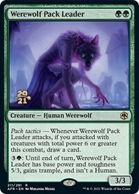 3G: Until end of turn, Werewolf Pack Leader has base power and toughness 5/3, gains trample, and isn't a Human.